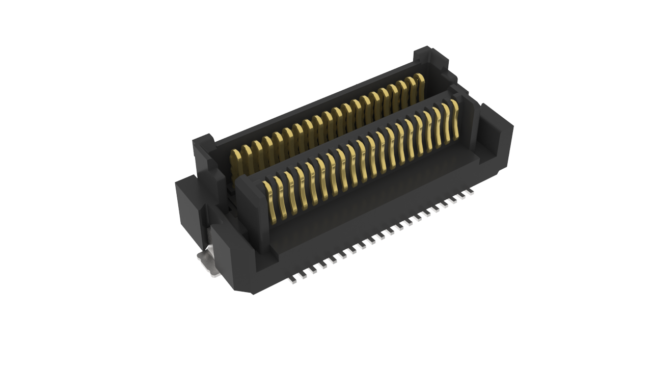 0.5 mm Pitch Hermaphroditic Mezzanine Connector, 20 positions, Standard length with pegs and hold-downs, Half of mated height equals 2 mm