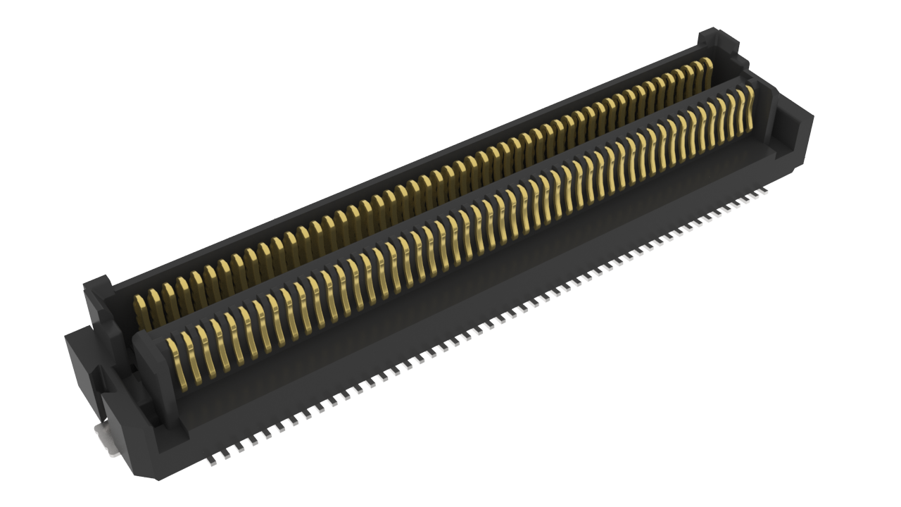 0.5 mm Pitch Hermaphroditic Mezzanine Connector, 50 positions, Standard length with pegs and hold-downs, Half of mated height equals 2 mm