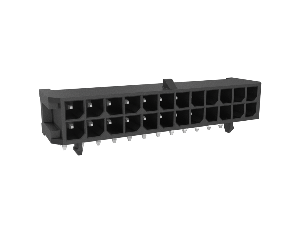 Minitek®Pwr 3.0, Dual Row, Right Angle Through Hole Header, 24 Positions, 100μin Tin plating, Non GW Compatible LCP, With Pegs, Tray Packing.