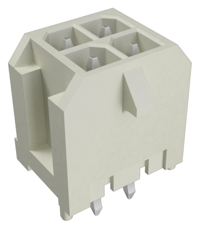 Minitek®Pwr 3.0, Dual Row, Vertical Through Hole Header, 4 Position, 3.2mm Kink Tail (100μin Tin) plating, GW Compatible LCP, Natural Color,Tray Packing.