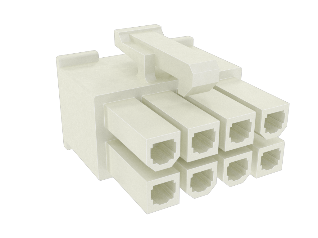Minitek®Pwr 4.2, Dual Row, Receptacle Housing, 8 Positions, Black Color, GW Compatible Nylon66.