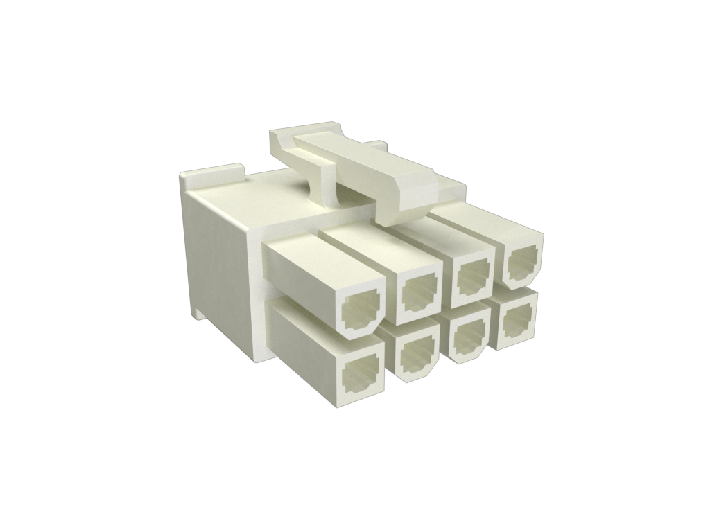 Minitek®Pwr 4.2, Dual Row, Receptacle Housing, 8 Positions, Natural Color, GW Compatible Nylon66.