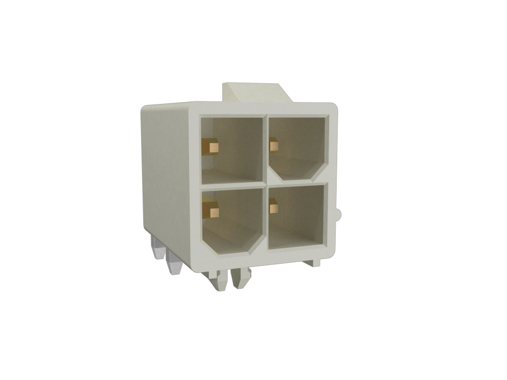 Minitek®Pwr 4.2, Dual Row, Right Angle Through Hole Header, 30μin Gold plating, Natural Color, 4 Positions, GW Compatible Nylon66, Tray Packing, With Pegs.