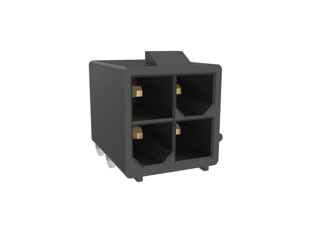 Minitek®Pwr 4.2, Dual Row, Right Angle Through Hole Header, 30μin Gold plating, Black Color, 4 Positions, GW Compatible Nylon66, Tray Packing.