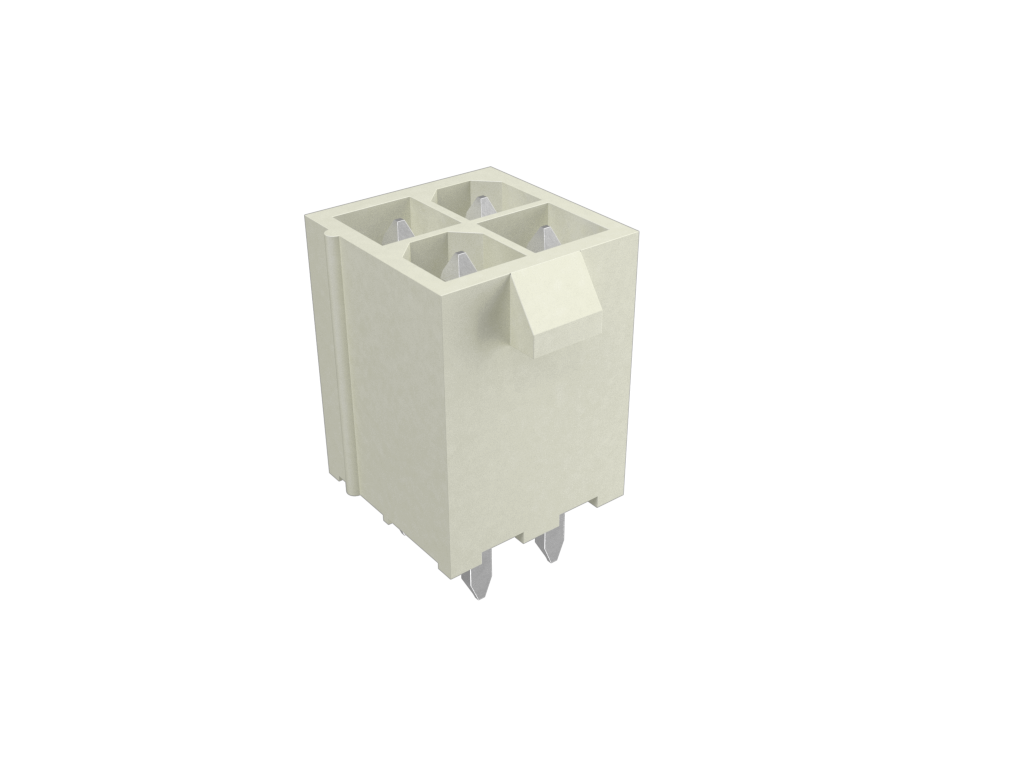 Minitek®Pwr 4.2, Dual Row, Vertical Through Hole Header, 80μin Min Tin plating, Natural Color, 4 Positions, Non GW Compatible Nylon66, Tape and Reel without cap.
