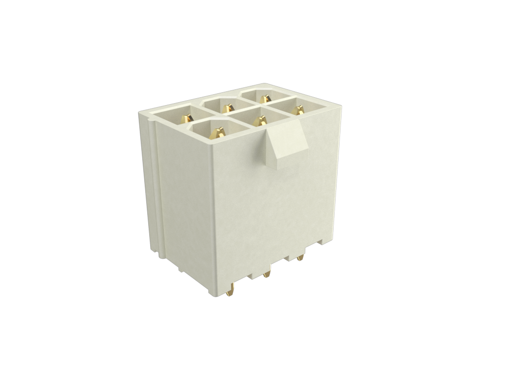 Minitek®Pwr 4.2, Dual Row, Vertical Through Hole Header, 30μin Gold plating, Natural Color, 6 Positions, LCP, GW Compatible, With Short Tail, Tape and Reel without cap.