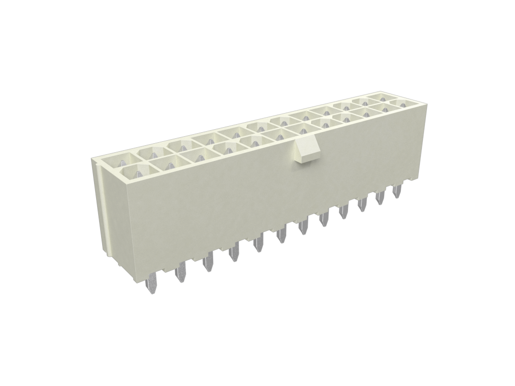 Minitek®Pwr 4.2, Dual Row, Vertical Through Hole Header, 80μin Min Tin plating, Natural Color, 24 Positions, LCP, GW Compatible, Tape and Reel without cap.