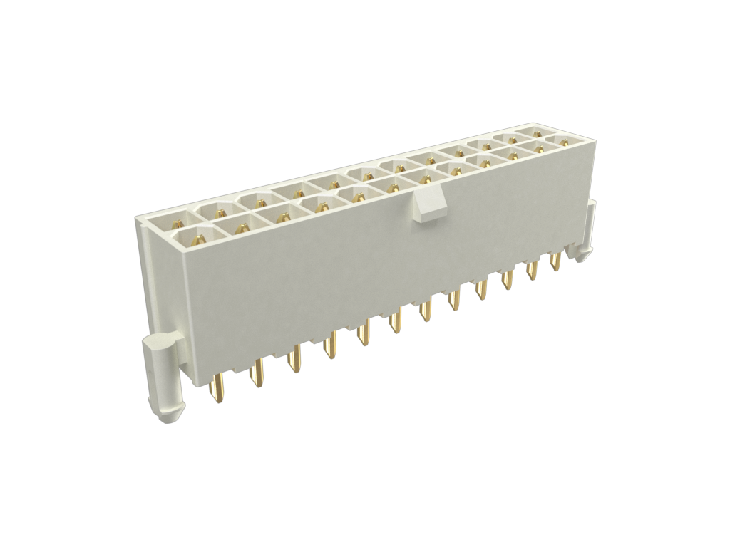 Minitek®Pwr 4.2, Dual Row, Vertical Through Hole Header, 30μin Gold plating, Natural Color, 24 Positions, LCP, GW Compatible, Tray Packing, With Pegs.