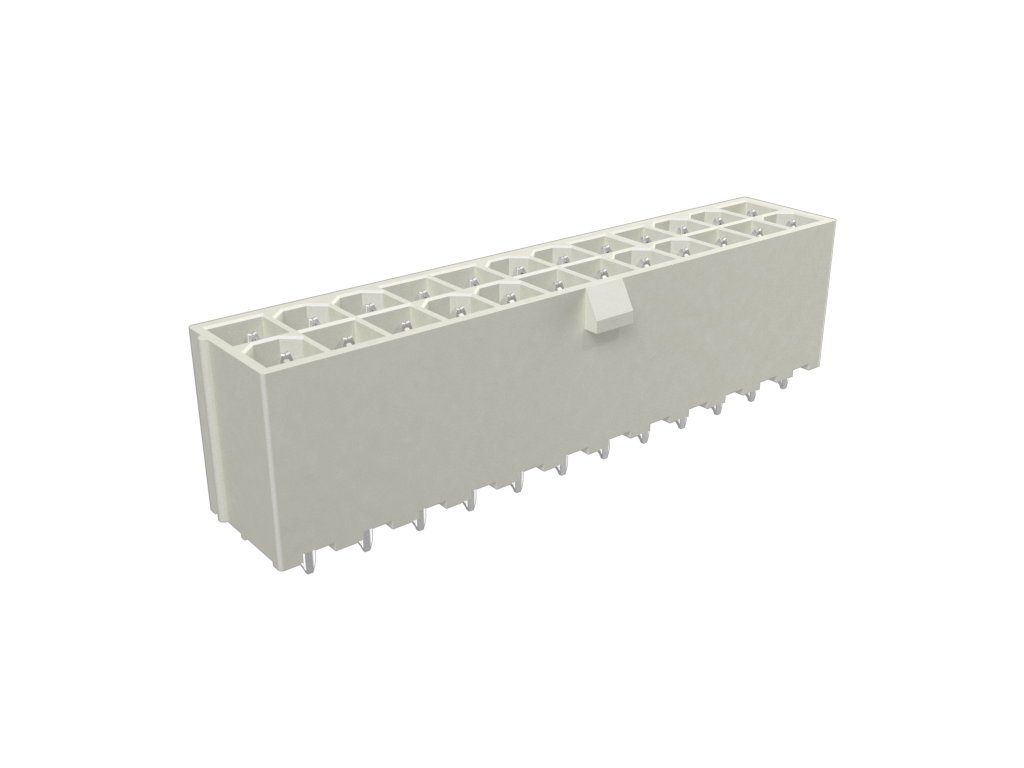 Minitek®Pwr 4.2, Dual Row, Vertical Through Hole Header, 80μin Min Tin plating, Natural Color, 24 Positions, GW Compatible Nylon66, Tray Packing, With Short Tail.