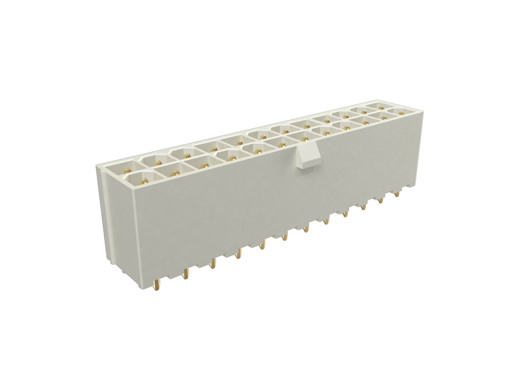 Minitek®Pwr 4.2, Dual Row, Vertical Through Hole Header, 30μin Gold plating, Natural Color, 24 Positions, Non GW Compatible Nylon66, With Short Tail, Tape and Reel without cap.