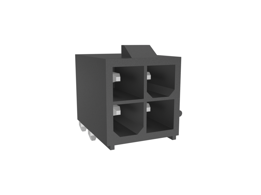 Minitek®Pwr 4.2 HCC, Dual Row, Right Angle Through Hole Header, 80μin Bright Tin plating, Black Color, 4 Positions, GW Compatible Nylon66, Tray Packing.