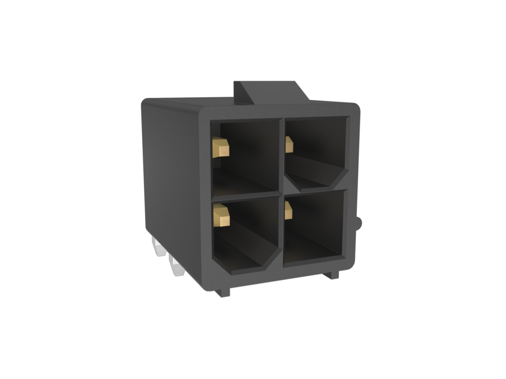 Minitek®Pwr 4.2 HCC, Dual Row, Right Angle Through Hole Header, 30μin Gold plating, Black Color, 4 Positions, LCP, GW Compatible, Tape and Reel.