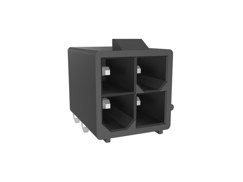 Minitek®Pwr 4.2 HCC, Dual Row, Right Angle Through Hole Header, 100μin Matte Tin plating, Black Color, 4 Positions, GW Compatible Nylon66, Tape and Reel.