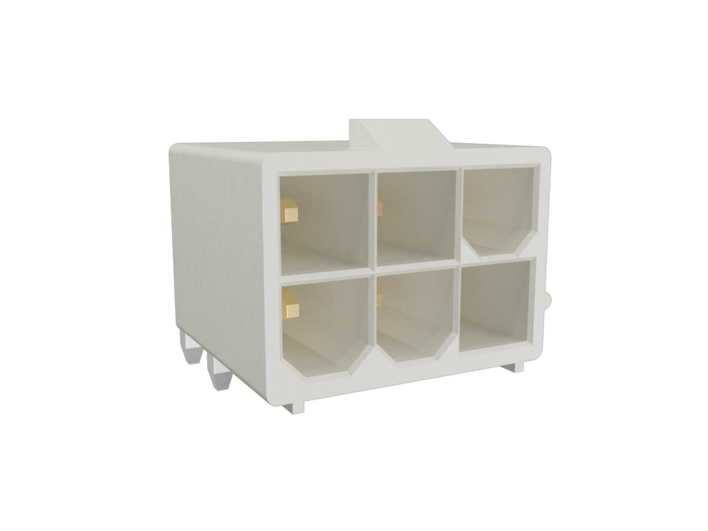 Minitek®Pwr 4.2 HCC, Dual Row, Right Angle Through Hole Header, 30μin Gold plating, Natural Color, 6 Positions, Non GW Compatible Nylon66, Tray Packing.