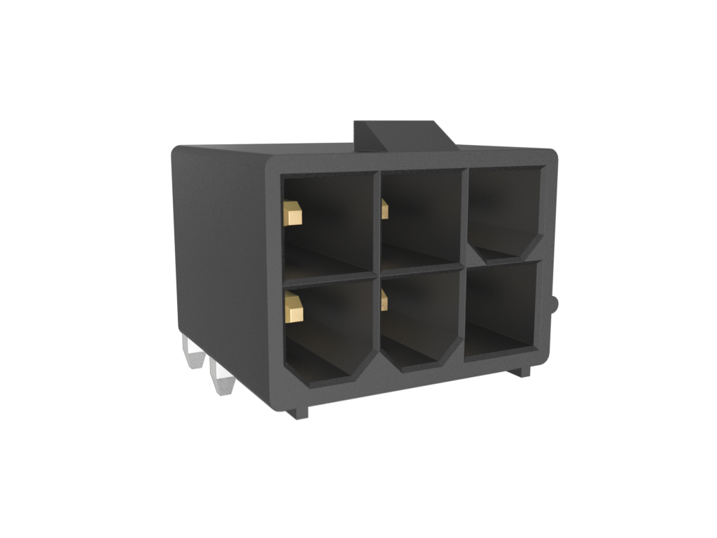 Minitek®Pwr 4.2 HCC, Dual Row, Right Angle Through Hole Header, 30μin Gold plating, Black Color, 6 Positions, Non GW Compatible Nylon66, Tray Packing.