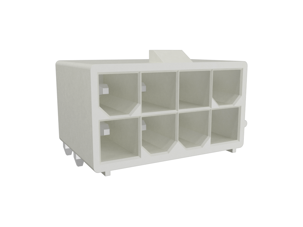Minitek®Pwr 4.2 HCC, Dual Row, Right Angle Through Hole Header, 100μin Matte Tin plating, Natural Color, 8 Positions, Non GW Compatible Nylon66, Tray Packing.