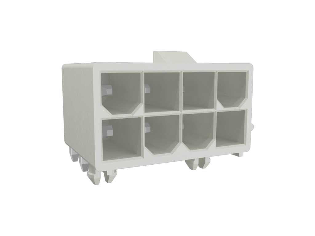 Minitek®Pwr 4.2 HCC, Dual Row, Right Angle Through Hole Header, 100μin Matte Tin plating, Natural Color, 8 Positions, LCP, GW Compatible, Tray Packing, With Pegs.