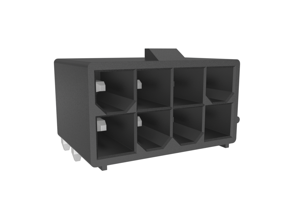 Minitek®Pwr 4.2 HCC, Dual Row, Right Angle Through Hole Header, 100μin Matte Tin plating, Black Color, 8 Positions, GW Compatible Nylon66, Tape and Reel.