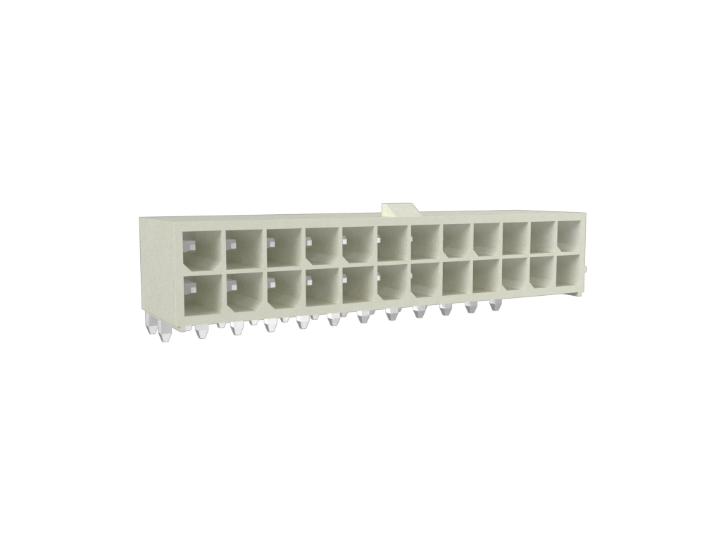 Minitek®Pwr 4.2 HCC, Dual Row, Right Angle Through Hole Header, 80μin Bright Tin plating, Natural Color, 24 Positions, Non GW Compatible Nylon66, Tray Packing.