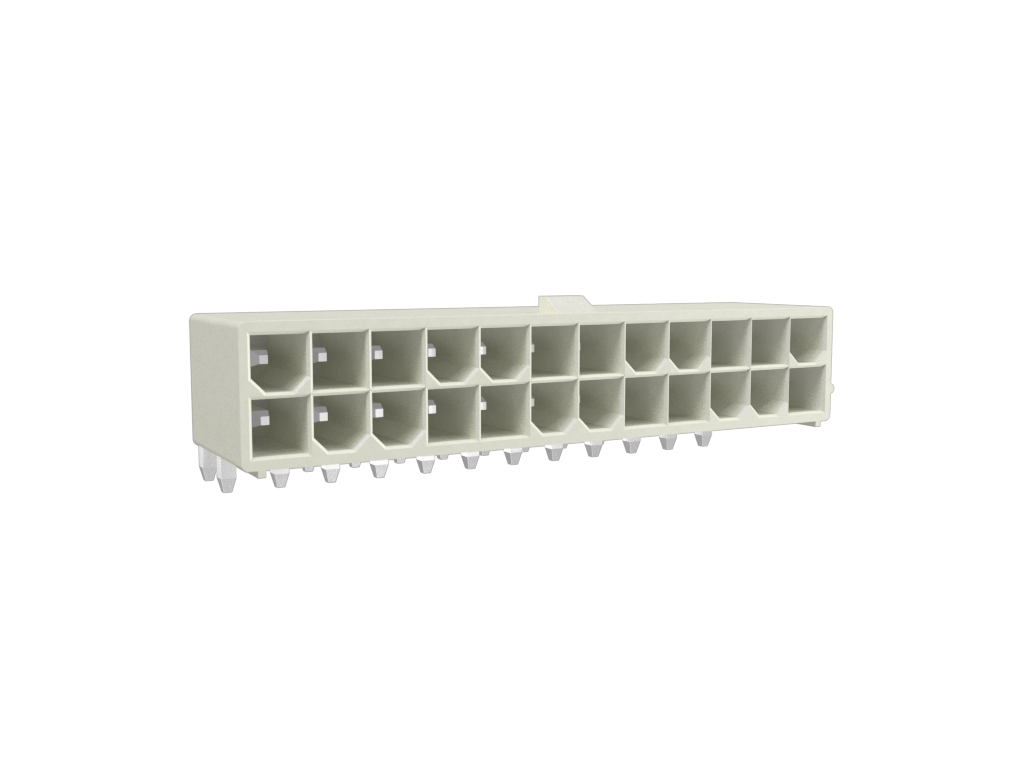 Minitek®Pwr 4.2 HCC, Dual Row, Right Angle Through Hole Header, 100μin Matte Tin plating, Natural Color, 24 Positions, GW Compatible Nylon66, Tray Packing.