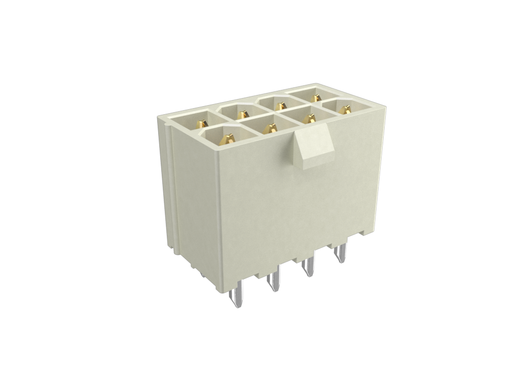 Minitek®Pwr 4.2 HCC, Dual Row, Vertical Through Hole Header, 30μin Gold on Contact area (100μin Matte Tin on Tails) plating, Natural Color, 8 Positions, LCP, GW Compatible, Tray Packing.