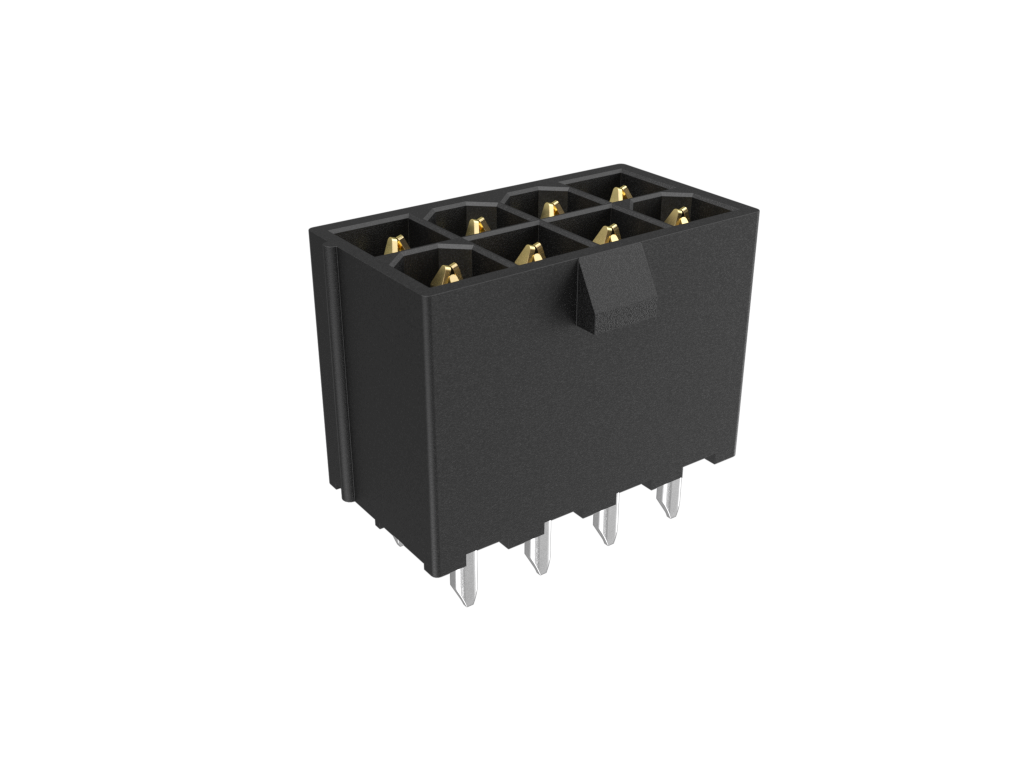 Minitek®Pwr 4.2 HCC, Dual Row, Vertical Through Hole Header, 30μin Gold on Contact area (100μin Matte Tin on Tails) plating, Black Color, 8 Positions, LCP, GW Compatible, Tray Packing.