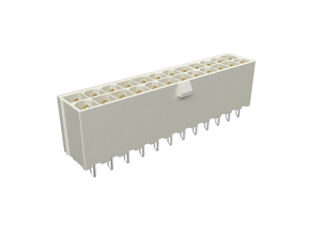 Minitek®Pwr 4.2 HCC, Dual Row, Vertical Through Hole Header, 30μin Gold on Contact area (100μin Matte Tin on Tails) plating, Natural Color, 24 Positions, GW Compatible Nylon66, Tray Packing.