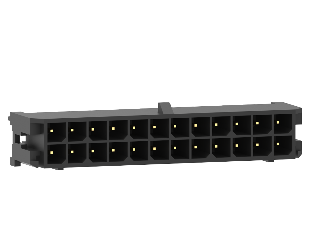 Minitek®Pwr 3.0 HCC, Dual Row, Vertical Through Hole Header, Tin plating, Black Color, 24 Positions, GW Compatible PA9T, Tray packing.