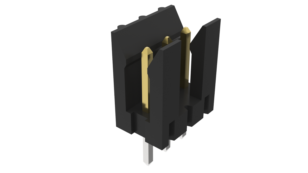 PV®Wire-to-Board Connector System, 2 Wall Shrouded vertical header – Through Hole – Single row – 3 Positions, 2.54mm (0.100in) pitch.
