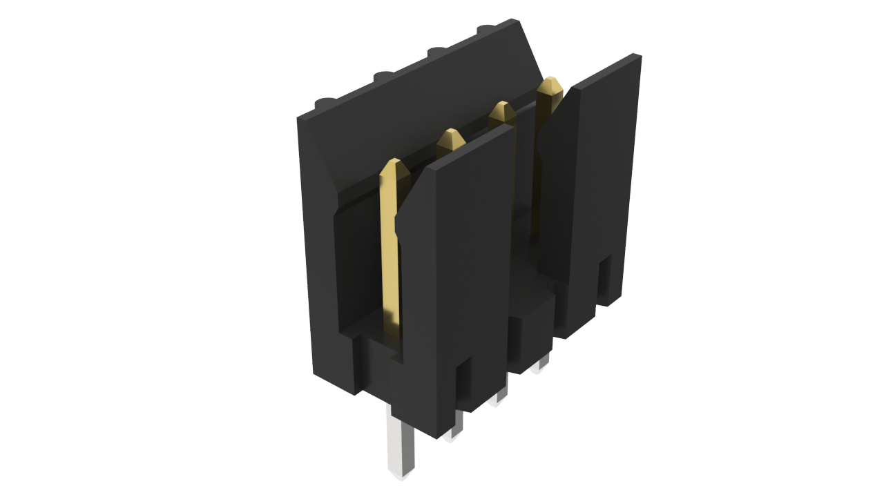PV®Wire-to-Board Connector System, 2 Wall Shrouded vertical header – Through Hole – Single row – 4 Positions, 2.54mm (0.100in) pitch.