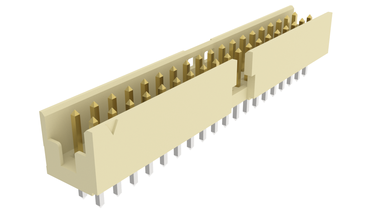 Minitek®, Board/Wire to Board Connectors, Shrouded Header – Through Mount – Double row – 38 Positions – 2mm (0.079inch) – Vertical
