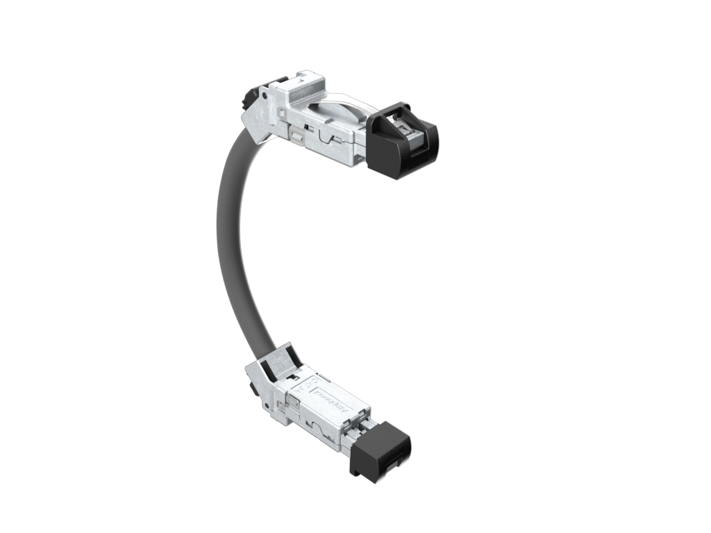 Industrial RJ45 cable assembly, 45 deg towards right Industrial RJ plug to 45 deg towards right Industrial RJ plug, 26AWG, 0.5m, 50u gold plating