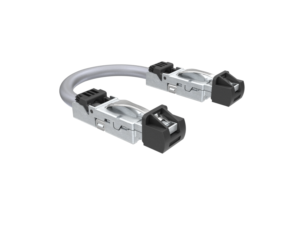 Industrial RJ45 cable assembly, straight Industrial RJ plug to straight Industrial RJ plug, 26AWG, 0.5m, 8u gold plating