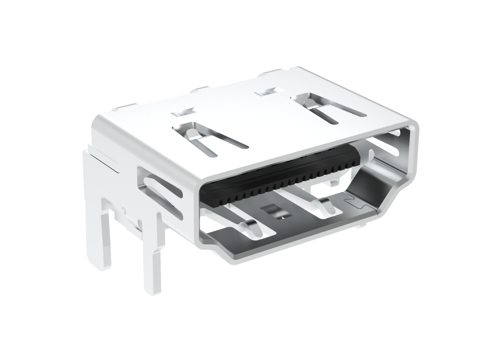 HDMI Connector System – G45 Series, Input Output Connectors, Receptacle, Type A, Right Angle, 0.5mm Pitch, 19 Position, SMT (Through Hole for Shell Peg) Type, 15μin Gold Plating, High Temperature Thermo Plastic, Black, Tape and Reel Package