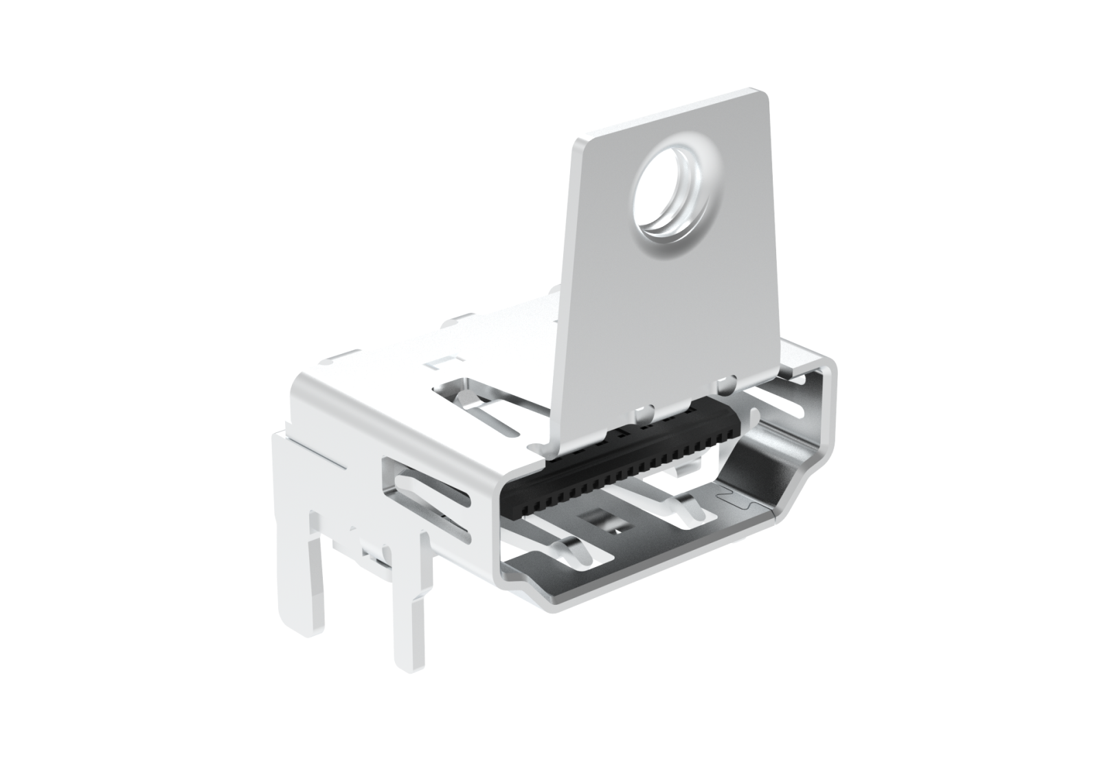 HDMI Connector System – G45 Series, Input Output Connectors, Receptacle, Type A, Right Angle, 0.5mm Pitch, 19 Position, SMT (Through Hole for Shell Peg) Type, With Flange, 15μin Gold Plating, High Temperature Thermo Plastic, Black, Tape and Reel Package