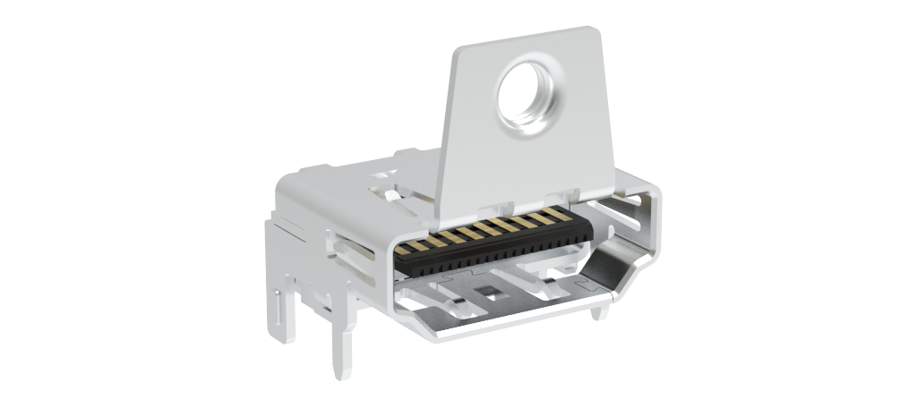 HDMI2.1, A, Right Angle, Standard Surface Mount, Flange, 15μin. gold