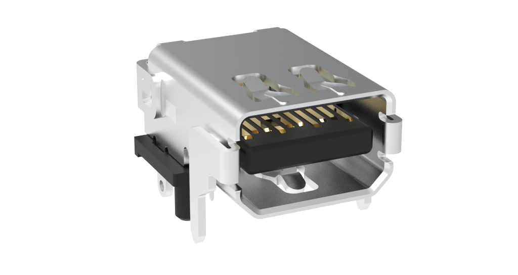 DisplayPort Connector System – G46 Series, Input Output Connectors, mini DisplayPort, 20 Position, Receptacle, Right Angle, SMT+Dip (Through Hole for Shell Peg) Type, Tail 2.20mm, 15μin Gold Plating, High Temperature Thermo Plastic, Black, Tube Package