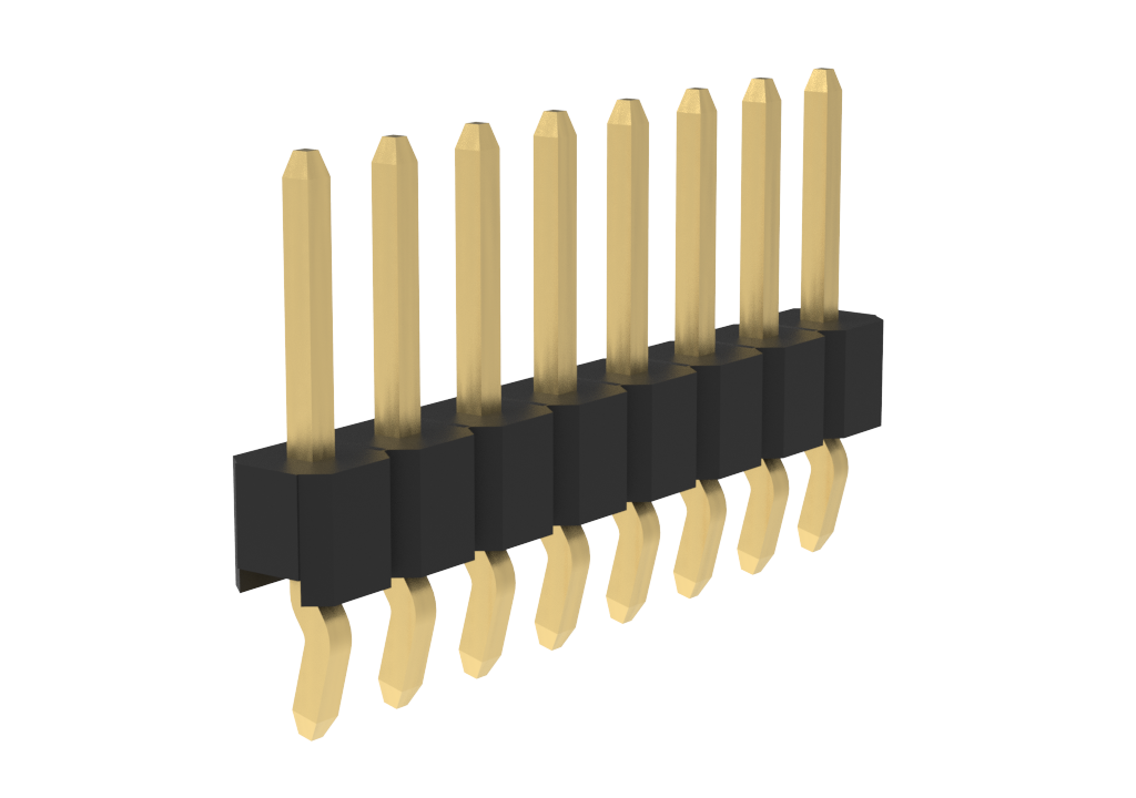 Pin Header 2.54mm Pitch STR DIP, 1x8Pin, 15μin Gold, NY6T, Kink Tail, 5.84mm*2.54mm*3.05mm, Color-Black, Bag