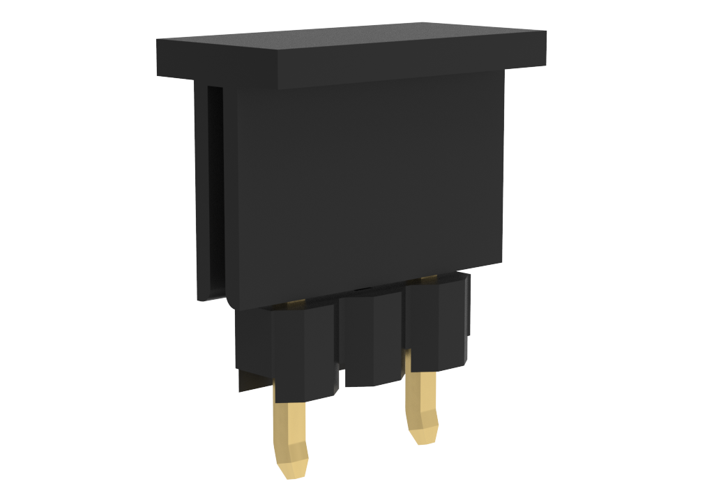 Pin Header 2.54mm Pitch U TYPE, 3Pin, FULL G/F, LCP, TAIL=1.4mm, Kink=15 degress, W/CAP