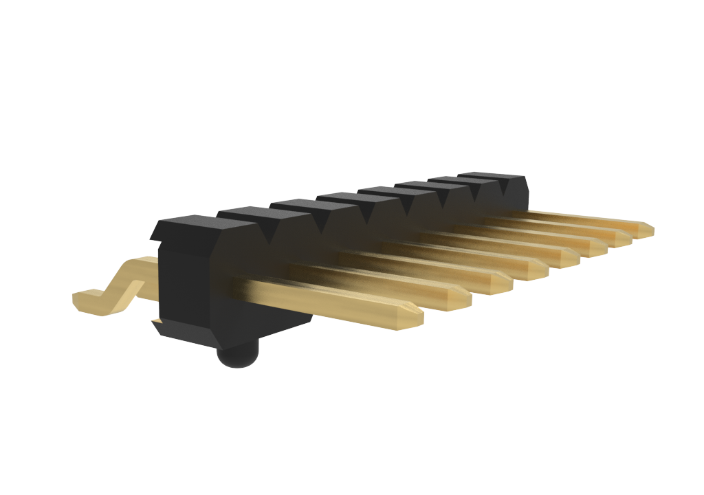 Board mount – Header Plug – Pin Header 2.54mm Pitch Right Angle,SMT,1x8Pin,Gold Flash,NY6T,With Located Post