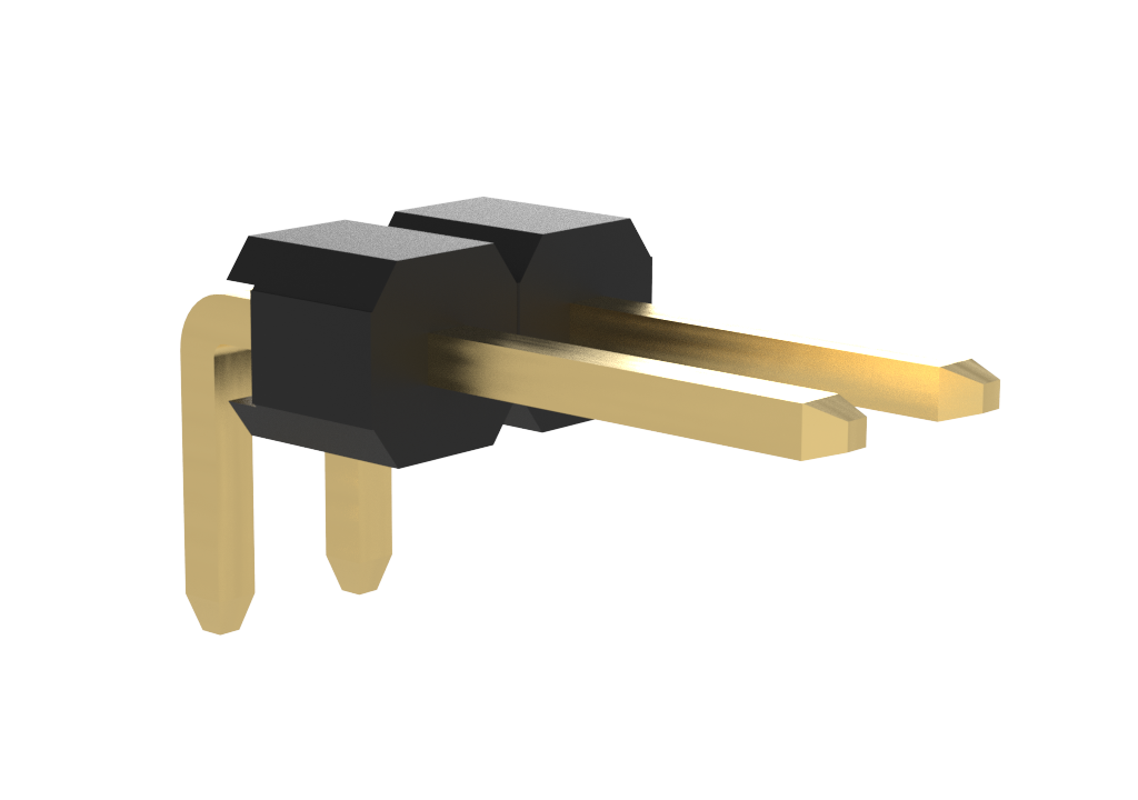 Pin Header 2.54mm Pitch Rightangle DIP, 1x2Pin, 15μin Gold, NY6T, 6.06mm*2.54mm*3.0mm, BAG