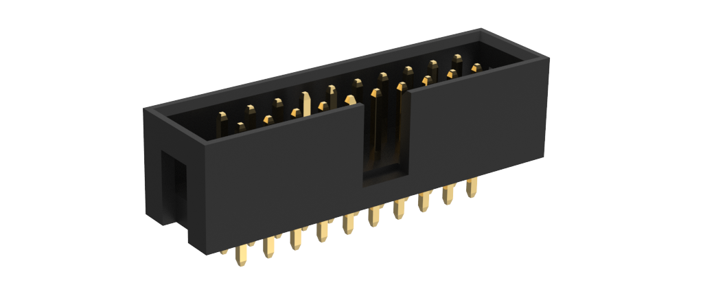 Board mount – Header Receptacle – Box Header 2.54mm Pitch*2.54mm Row Vertical DIP,2x10Pin,G/F,NY6T,Tail=3.2mm,Color-Black