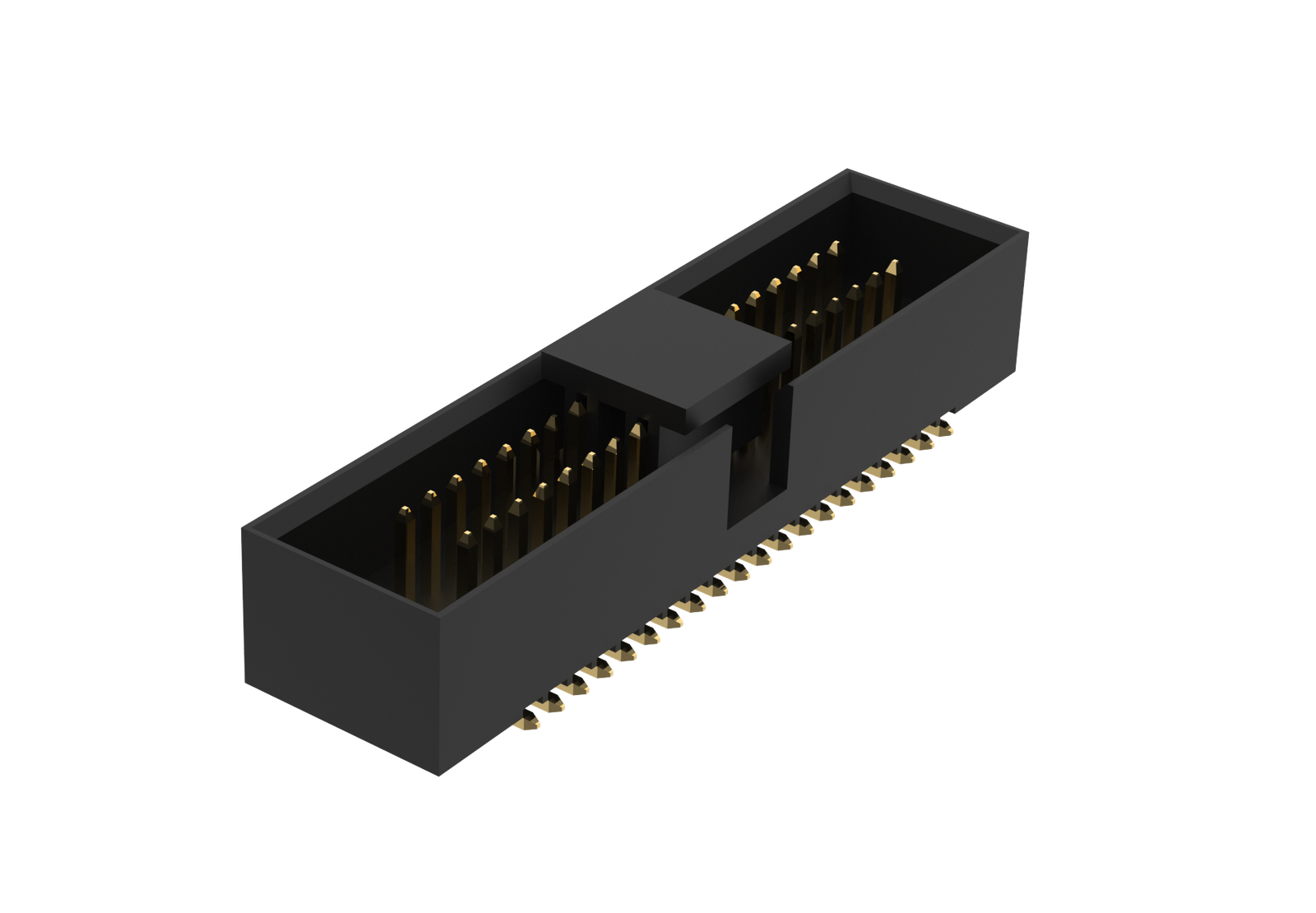 Board mount – Header Plug – Box Header 1.27mm Pitch*2.54mm Row Vertical SMT,2x20Pin,10μin Gold,NY6T,With CAP,High-retention