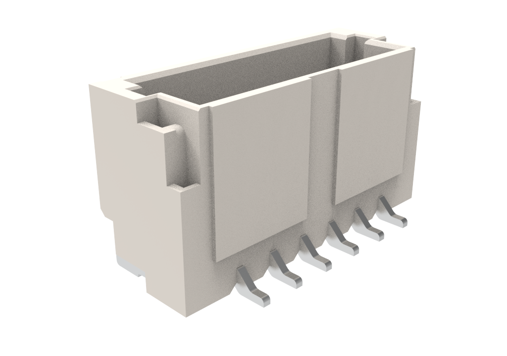 Board mount – Header Receptacle – Wire to Board 1.0mm Pitch Vertical SMT,1x6Pin,Matte Tin,NY9T,Color-White