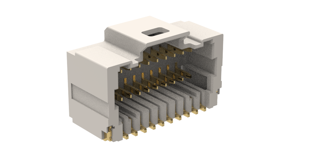 Board mount – Header Plug – Wire to Board 1.0mm Pitch,R/A SMT, 2x10PIN,G/F,NY4T,W/LATCH, COLOR-NATURAL, HALOGEN FREE