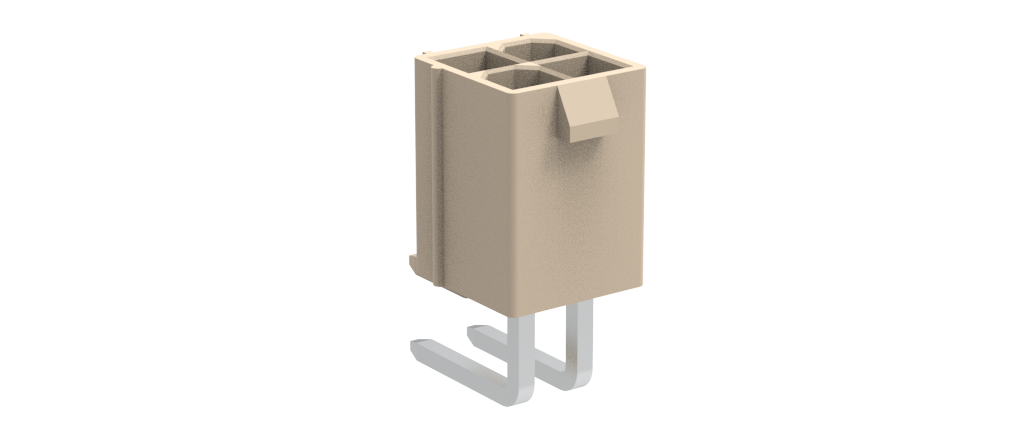 Mini power, Right Angle, Dual row, 4.2mm pitch, 4 positions , 100μin Tin, 3.60mm tail length, LCP, Natural , TRAY