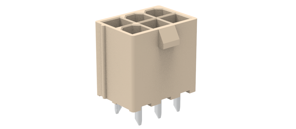 Mini power, Vertical, Dual row, 4.2mm pitch, 6 positions , 100μin Tin, 3.50mm tail length, LCP, Natural , TRAY