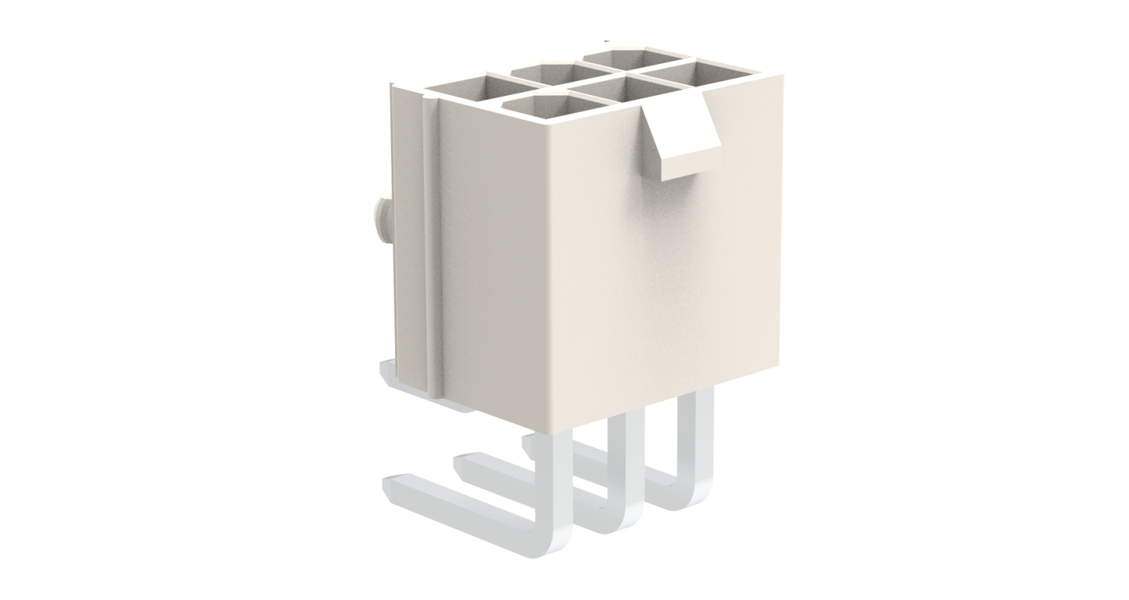Mini power, Right Angle, Dual row, 4.2mm pitch, 6 positions , 100μin Tin, 3.60mm tail length, NY6T, Natural , TRAY