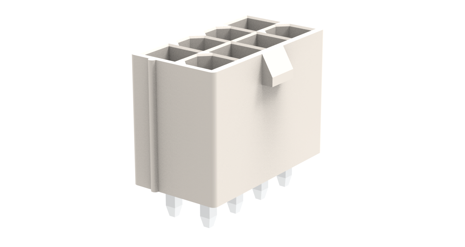 Mini power, Vertical, Dual row, 4.2mm pitch, 8 positions , 100μin Tin, 3.50mm tail length, 1 post, NY6T, Natural , TRAY