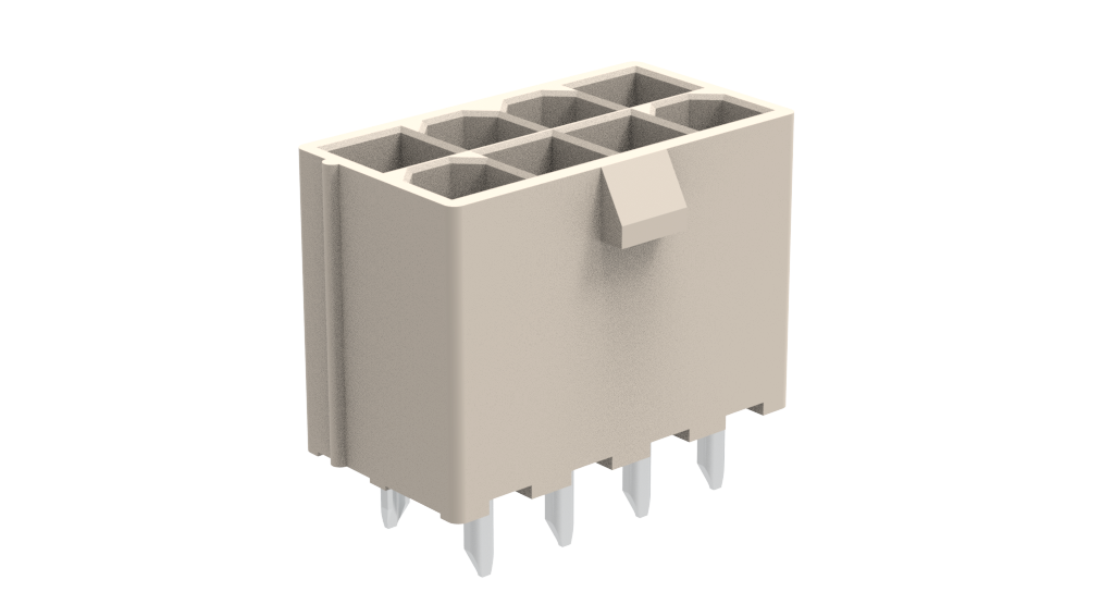 Mini power, Vertical, Dual row, 4.2mm pitch, 8 positions , 100μin Tin, 3.50mm tail length, Nylon, Natural , TRAY